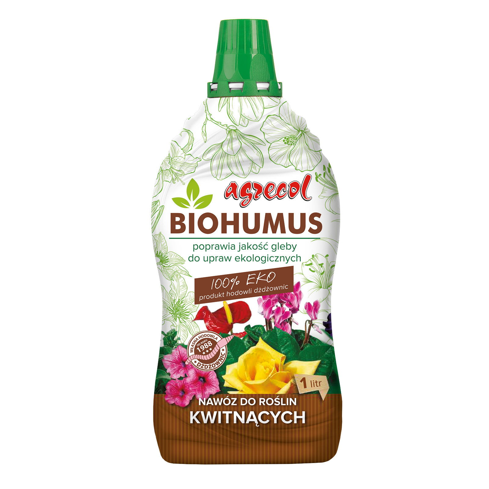 Biohumus nawóz do roślin kwitnących to płynny nawóz organiczny. Nawóz wzbogacono o odpowiednio dobrane formy łatwo przyswajalnego potasu, potrzebnego roślinom w fazie intensywnego kwitnienia. Przeznaczony do wszelkich upraw roślin, znajdujących się w fazie kwitnienia oraz w fazie poprzedzającej kwitnienie. Systematyczne stosowanie nawozu zapewnia zawiązywanie dużej liczby okazałych pąków kwiatowych. Biohumus do roślin kwitnących zawiera również inne makroskładniki (fosfor i azot), potrzebne roślinom do prawidłowego rozwoju i bujnego wzrostu.