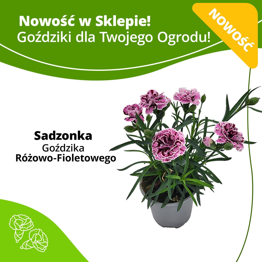 Goździk Różowo-Fioletowy to niezawodna bylina, która szybko wnosi kolor i porządek do kompozycji. Tworzy zwarte kępy o wysokości 20-35 cm i obficie kwitnie od maja do lipca, prezentując pełne, lekko postrzępione płatki w tonach różu przeplatanych fioletem/brunatnym akcentem. Najlepiej rośnie w słońcu na lekkim, przepuszczalnym podłożu; krótkie przesuszenie znosi lepiej niż zastój wody. Sprawdzi się na froncie rabat, w obwódkach, na skalniakach oraz w donicach na balkonach i tarasach. Aby utrzymać roślinę w świetnej kondycji, systematycznie usuwaj przekwitłe kwiaty i zasilaj co 4–6 tygodni nawozem dla roślin kwitnących. Dzięki niewielkim wymaganiom i mrozoodporności to pewny wybór, gdy chcesz uzyskać mocny efekt dekoracyjny przy minimalnej pracy – sięgnij po sprawdzone sadzonki i ciesz się barwnym dywanem kwiatów przez całe lato.
