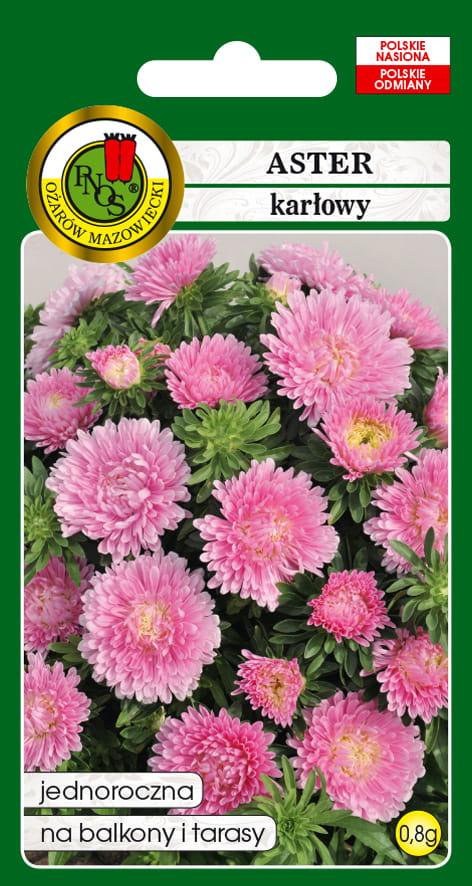 Aster Karłowy Różowy to jednoroczna, niska odmiana, charakteryzująca się pełnymi, dużymi kwiatami o średnicy 6-9 cm w intensywnie różowym kolorze. Dzięki swojej kompaktowej formie idealnie sprawdzi się na rabatach, obwódkach, balkonach oraz w skrzynkach i donicach.