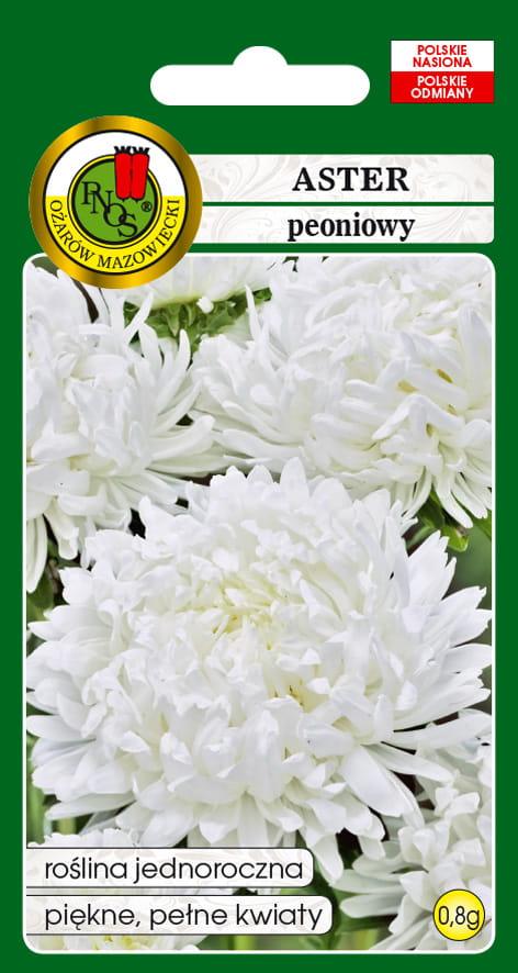 Aster Peoniowy Biały to jednoroczna roślina ozdobna, ceniona za swoje pełne, półkoliste kwiaty o średnicy około 10 cm w intensywnie białym odcieniu. Jest doskonałym wyborem do ogrodów, rabat i na kwiat cięty, ponieważ kwiaty długo utrzymują świeżość po ścięciu.