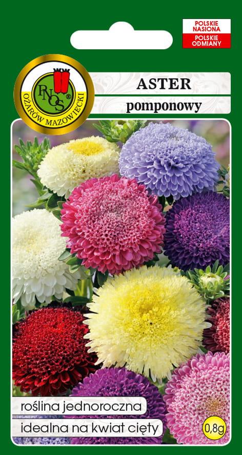 Aster Pomponowy Mieszany to jednoroczna roślina ozdobna, wyróżniająca się gęstymi, pomponowymi kwiatami w szerokiej gamie barw. Jej zwarty pokrój i intensywne kwitnienie sprawiają, że doskonale prezentuje się na rabatkach, obwódkach oraz w bukietach, ponieważ długo zachowuje świeżość po ścięciu.