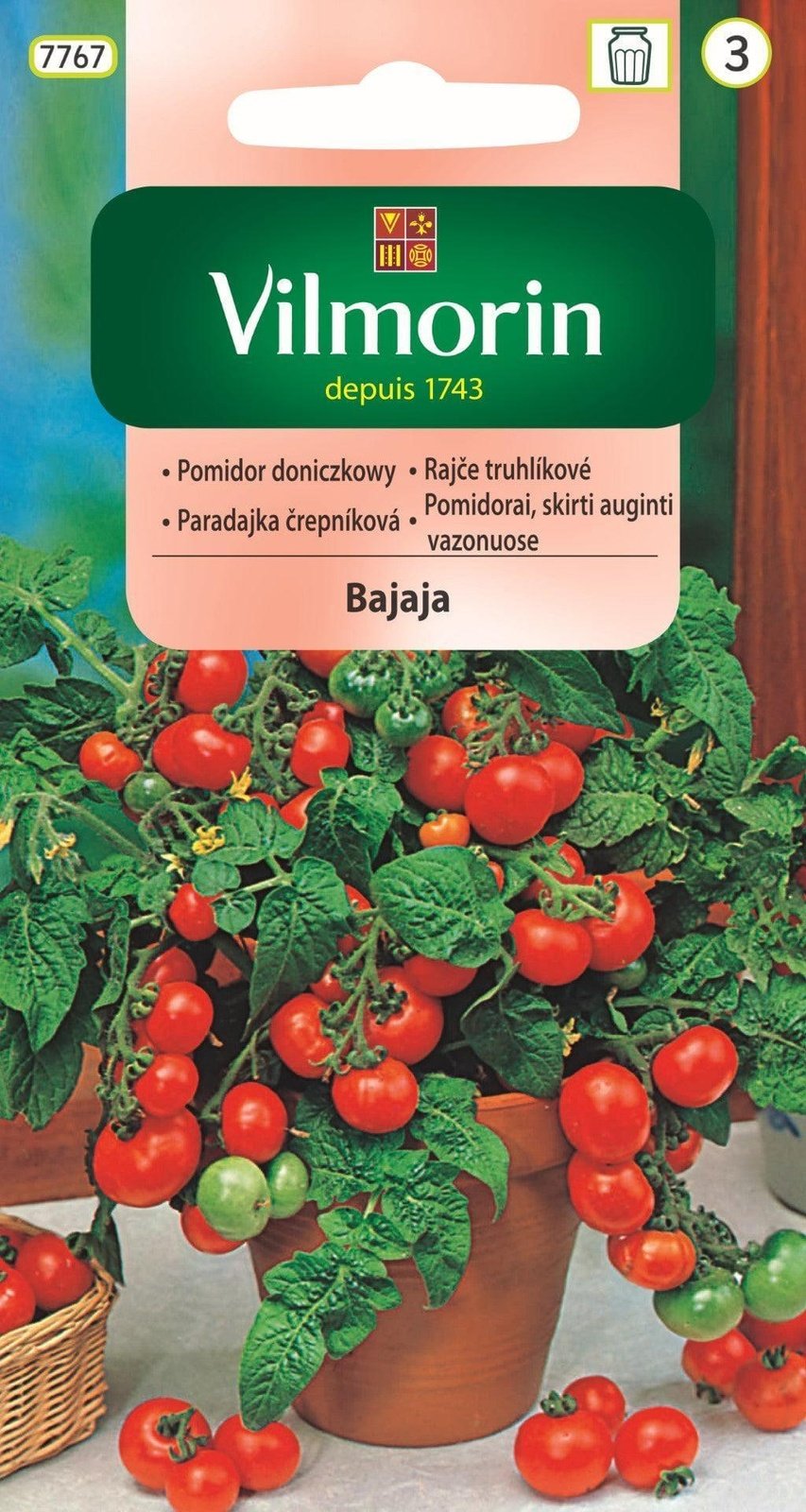 Pomidor Bajaja to średnio wczesna, karłowa odmiana koktajlowa, idealna do uprawy w pojemnikach, donicach i skrzynkach balkonowych. Tworzy przewieszające się pędy, obsypane setkami małych, soczystych pomidorków.