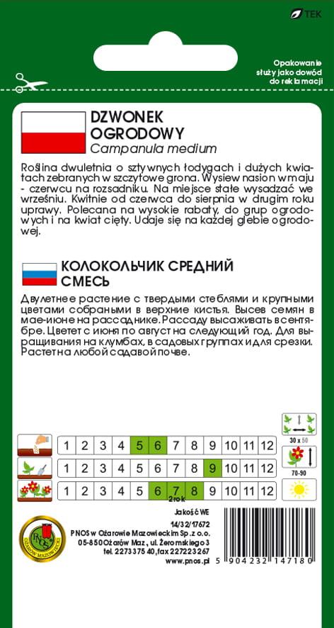 Nasiona - DZWONEK OGRODOWY NIEBIESKI 1g