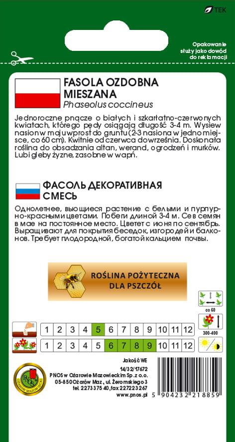 Fasola Ozdobna D’Espagne to jednoroczna, szybko rosnąca roślina pnąca, której pędy osiągają 3-4 m. Jej dwukolorowe kwiaty – białe i szkarłatnoczerwone – tworzą niezwykle efektowną ozdobę ogrodów, altan, werand, ogrodzeń i murków. Kwitnie obficie od czerwca do września.