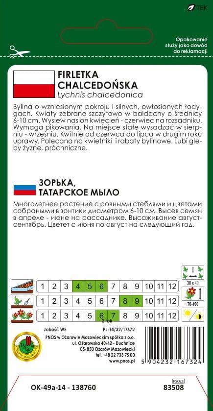 Nasiona - FIRLETKA CHALCEDOŃSKA SZKARŁATNA 1g