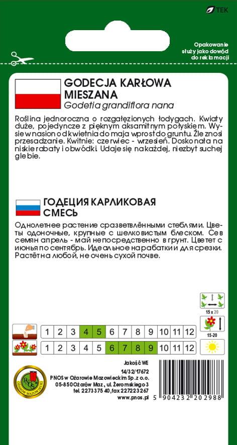 Nasiona - GODECJA KARŁOWA MIESZANA 1g