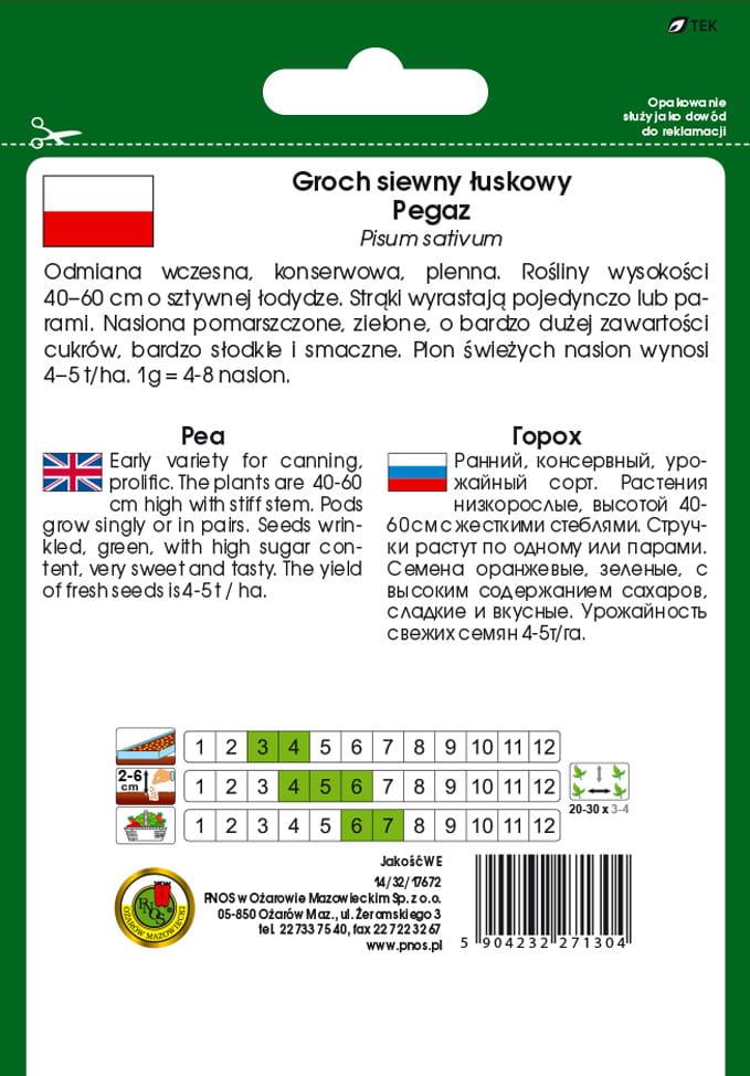 Groch 'Pegaz' to doskonały wybór dla ogrodników poszukujących plennej, smacznej odmiany o wysokiej jakości nasion, idealnej do przetworów i spożycia na świeżo.