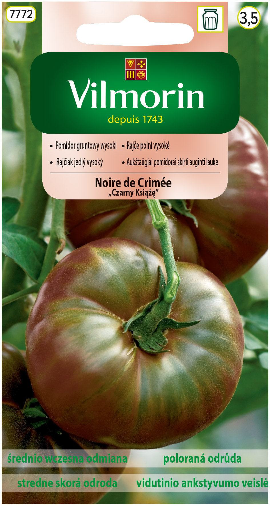 Pomidor Noire de Crimée to średnio wczesna, wysoka odmiana gruntowa, wyróżniająca się ciemnym, niemal czarnym kolorem owoców. Pomidory osiągają 170-180 g, są mięsiste, niezwykle aromatyczne i cenione za bogaty, słodko-kwaśny smak. Dojrzewają już po 75 dniach, zapewniając obfite i smaczne plony.
