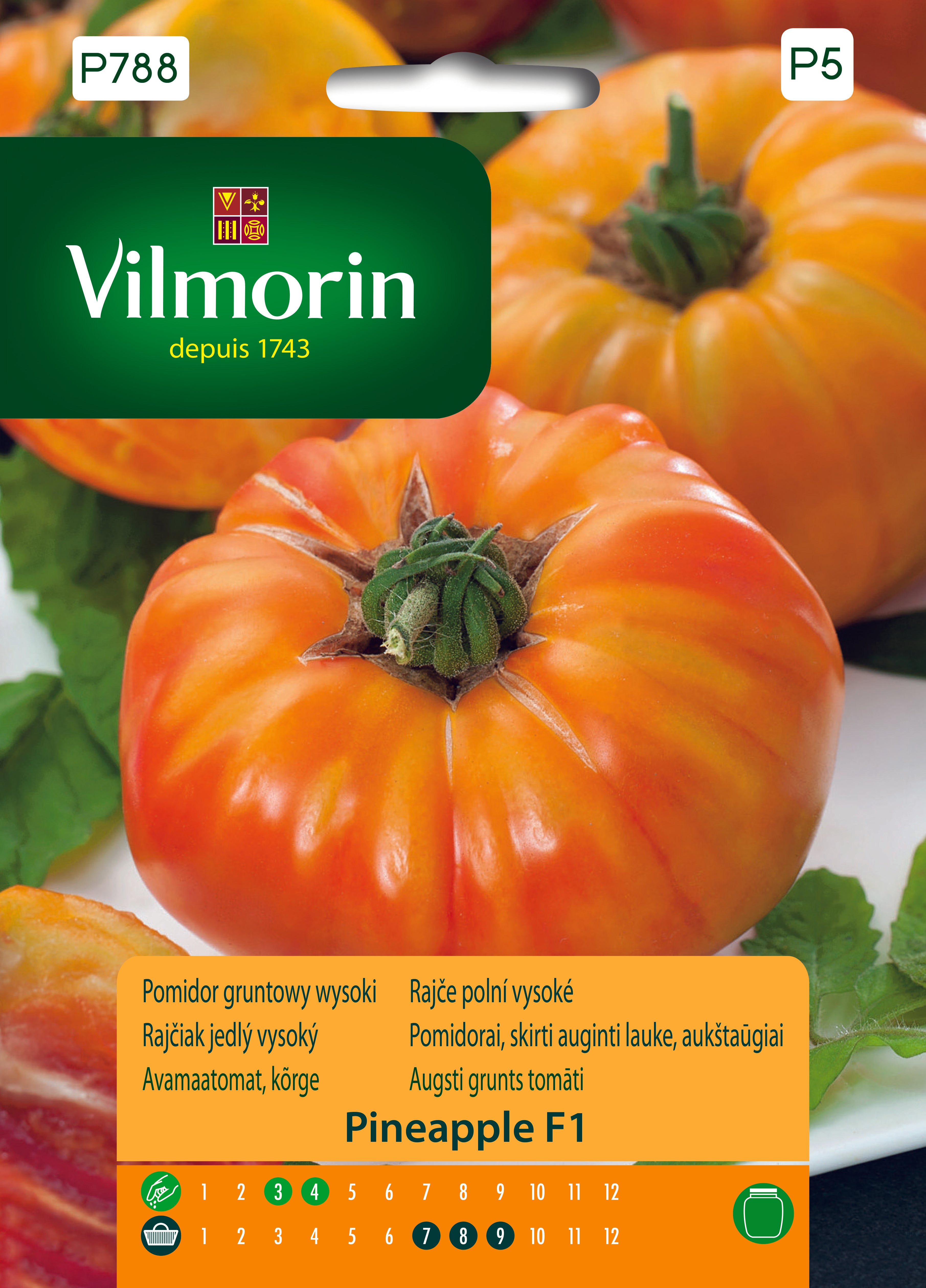 Pomidor Pineapple F1 to wysoka odmiana gruntowa i pod osłony, wyróżniająca się słonecznym żółtoczerwonym kolorem oraz niezwykle mięsistym i aromatycznym miąższem. Jego cienka skórka oraz nieregularne czerwone przebarwienia w części centralnej nadają mu oryginalny wygląd i egzotyczny charakter.