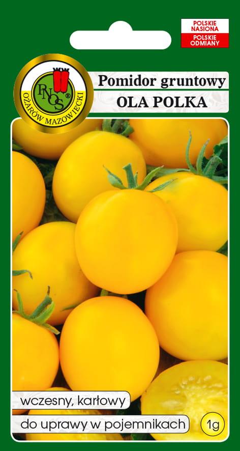 Pomidor Ola Polka to bardzo wczesna, karłowa odmiana gruntowa, charakteryzująca się sztywnołodygowym pokrojem i liśćmi typu ziemniaczanego. Roślina jest samokończąca i niezbyt silnie rosnąca, dzięki czemu świetnie nadaje się do uprawy w donicach, na balkonach i tarasach.