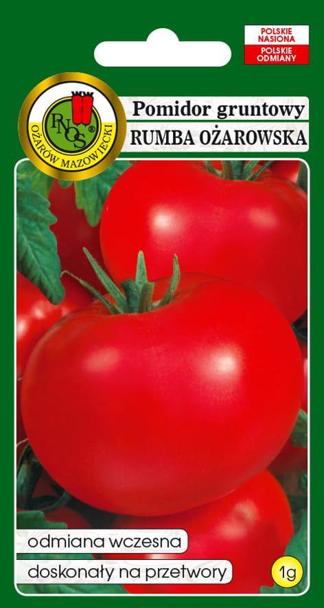 Pomidor Rumba Ożarowska to wczesna, bardzo plenna odmiana gruntowa, ceniona w przetwórstwie za wysoką zawartość witaminy C oraz doskonały balans cukrów i kwasów organicznych. Owoce o średniej wielkości (ok. 100 g) są lekko spłaszczone, mięsiste, twarde i odporne na pękanie oraz zgniatanie.